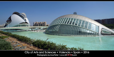 City of Arts and Science | Valencia | Spain | 2016-05-16Same place, same buildings but blue skies. In the morning of our departure to Tarragona I spent an hour at the famous white buildings, with the blue sky and the blue water it looked marvellous.